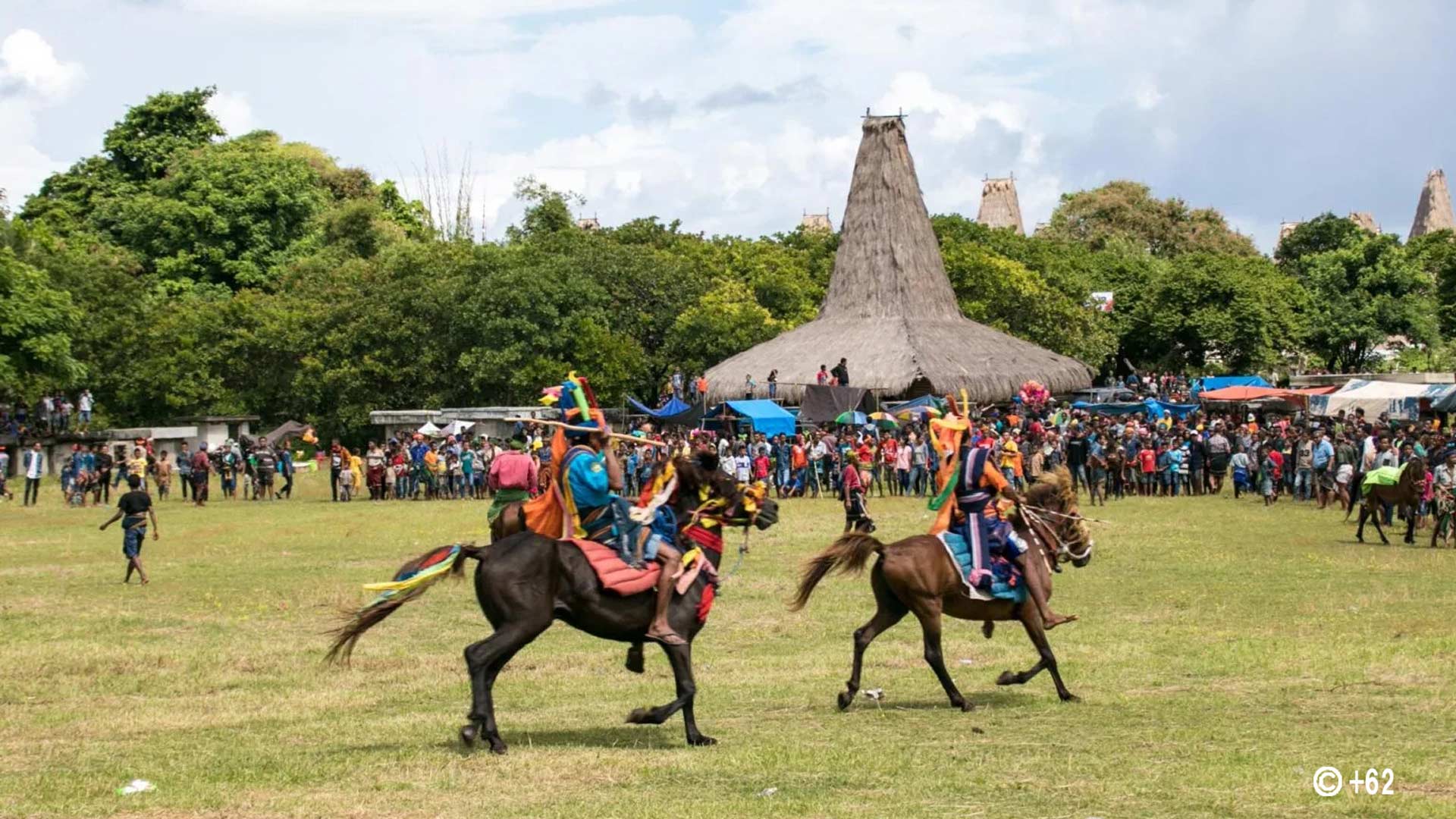 Cada año, los habitantes celebran la Pasola, una ceremonia ecuestre en la que dos equipos de jinetes se enfrentan para honrar las cosechas y renovar los vínculos con la tierra.