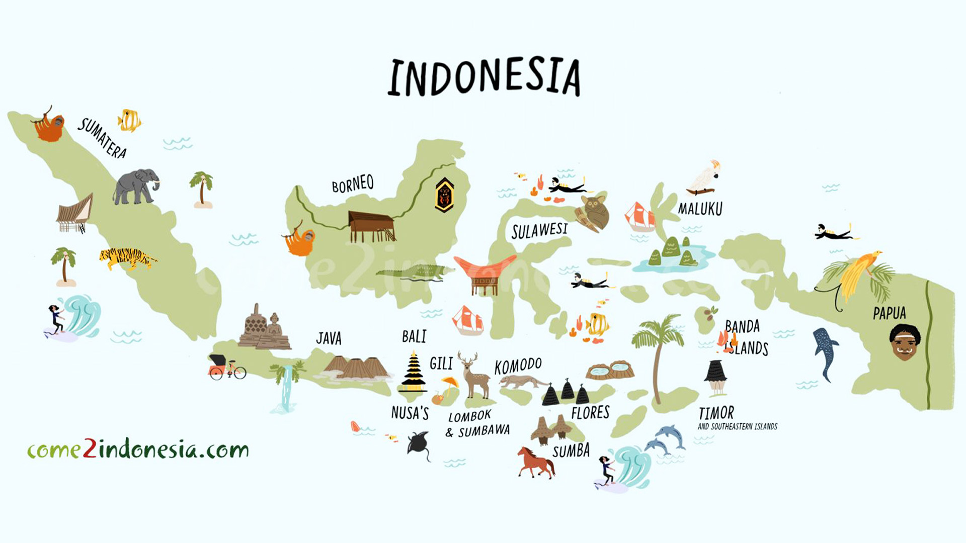 Las principales conexiones aéreas parten desde Bali, Yakarta y Makassar, y desde allí se puede acceder a destinos como Labuan Bajo (Flores), Tambolaka (Sumba) o Sorong (Raja Ampat).