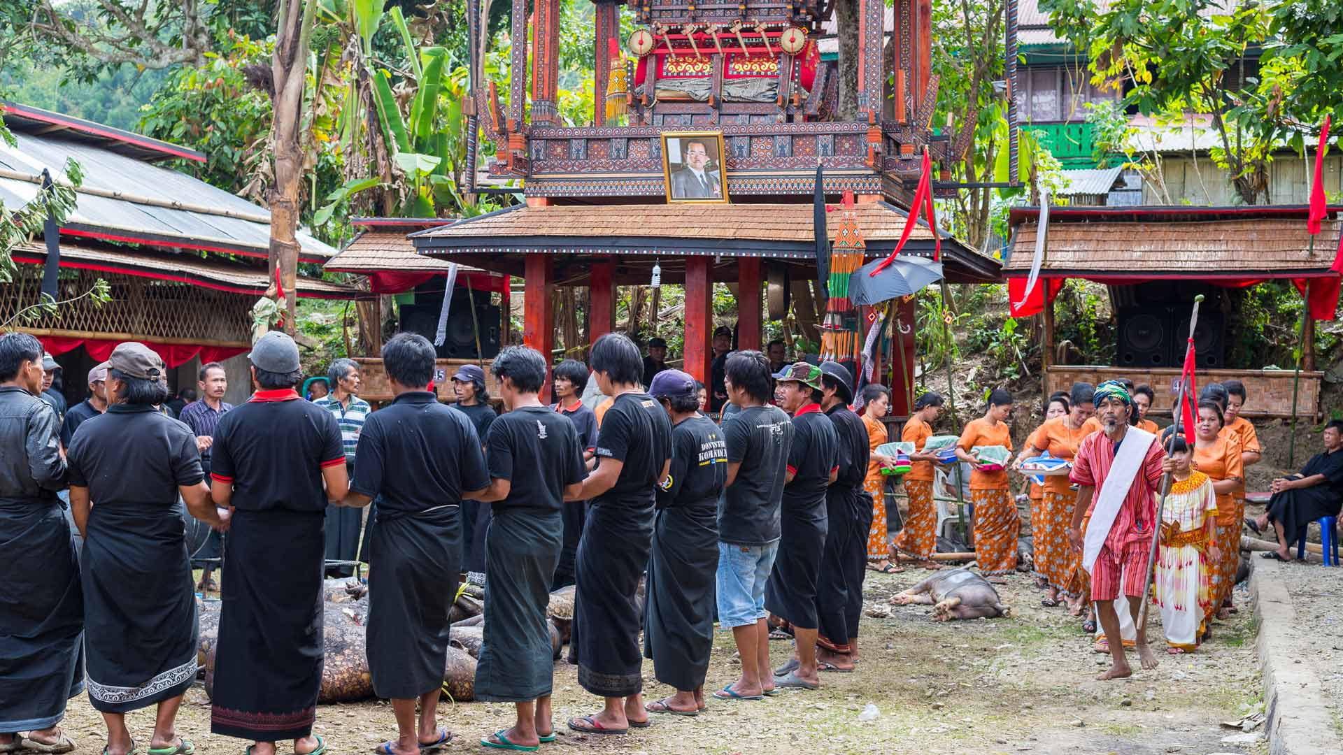 El viaje por Sulawesi es una experiencia cultural profunda. Los toraja celebran la vida y la muerte con igual intensidad, en ceremonias que pueden durar varios días y que reúnen a toda la comunidad.