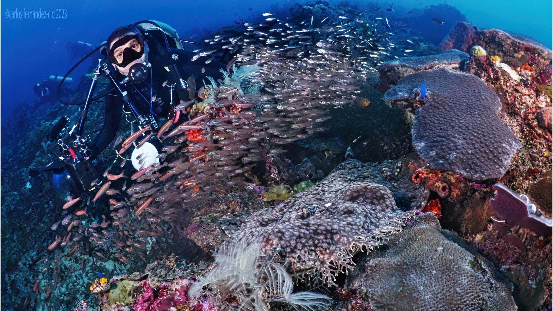 Bajo la superficie, la vida marina alcanza niveles de biodiversidad únicos: tiburones alfombra, mantarrayas, tortugas y un universo de corales que convierten este lugar en el epicentro del buceo mundial.