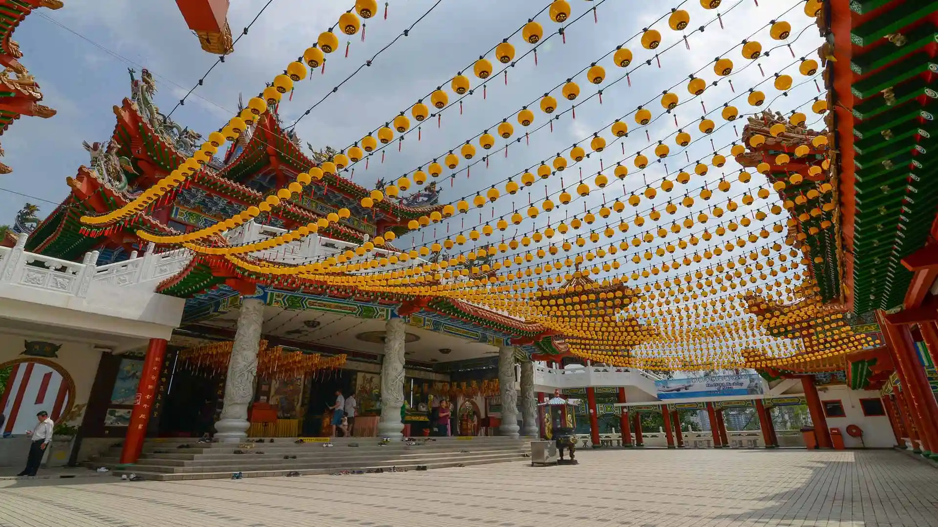 El budismo introduce otra atmósfera. El Thean Hou Temple, situado en una colina, combina tradición china, vistas panorámicas y una sensación de calma elevada sobre la ciudad. Por su parte, el Guan Di Temple, más discreto, mantiene viva la devoción cotidiana en el corazón urbano.