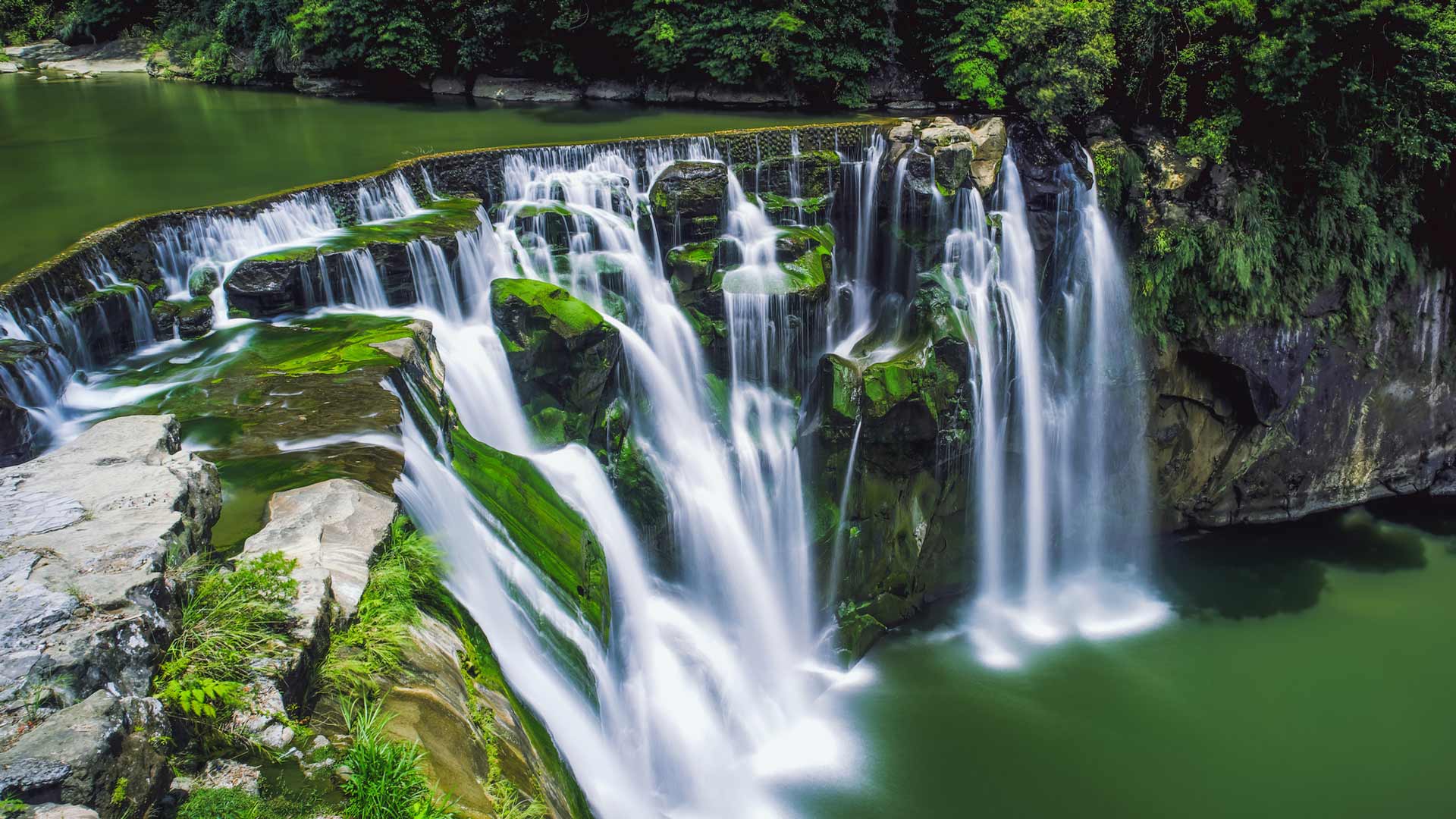 La cascada Shifen es una de las más grandes de Taiwán, ubicada en el distrito de Pingxi. También se la conoce como el “Niágara de Taiwán” por su magnífico paisaje en forma de cortina, con una anchura de aproximadamente 40 m y una caída de aproximadamente 20 m.