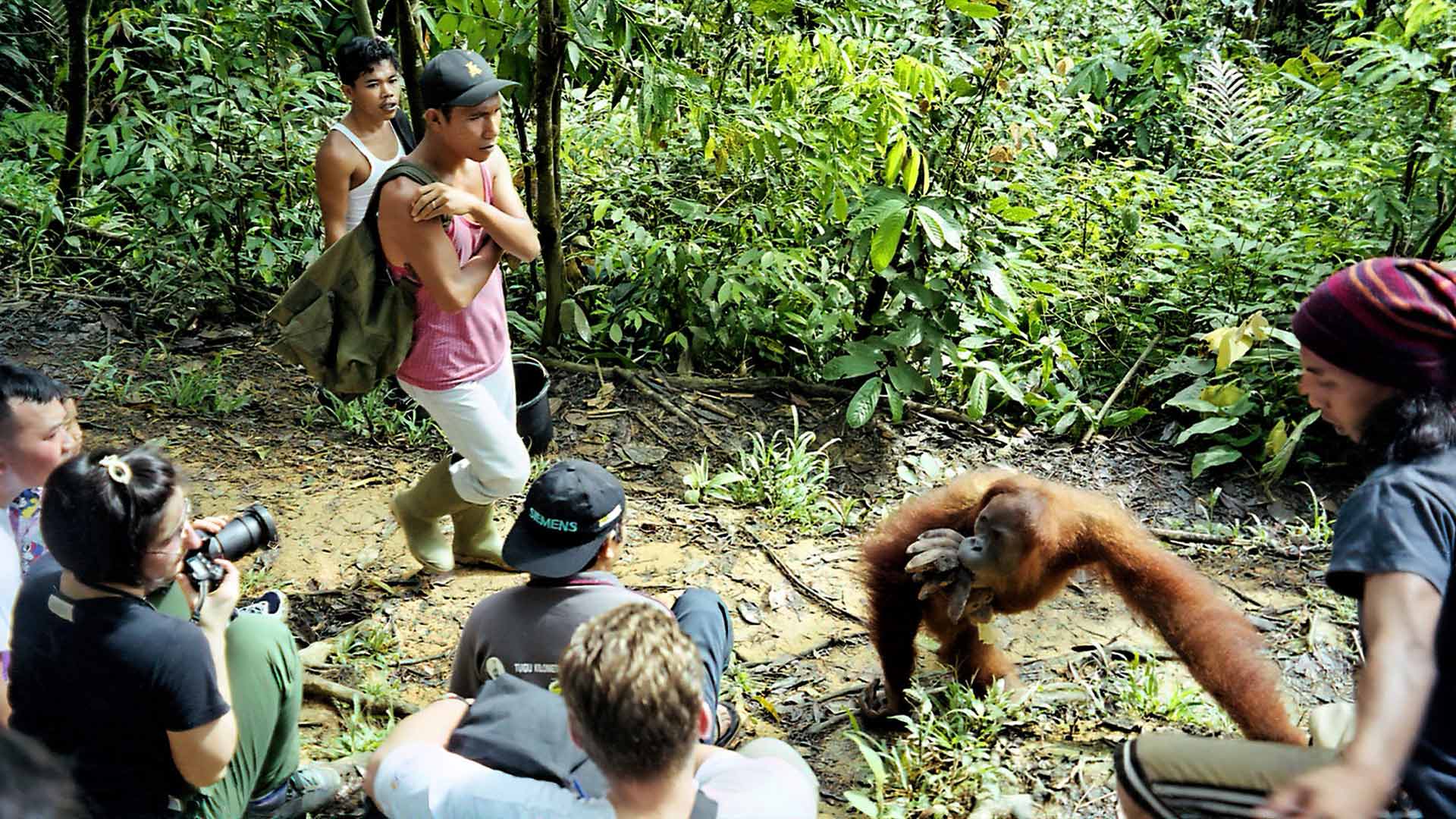 - Orangutanes y gibones en las selvas de Borneo y Sumatra.