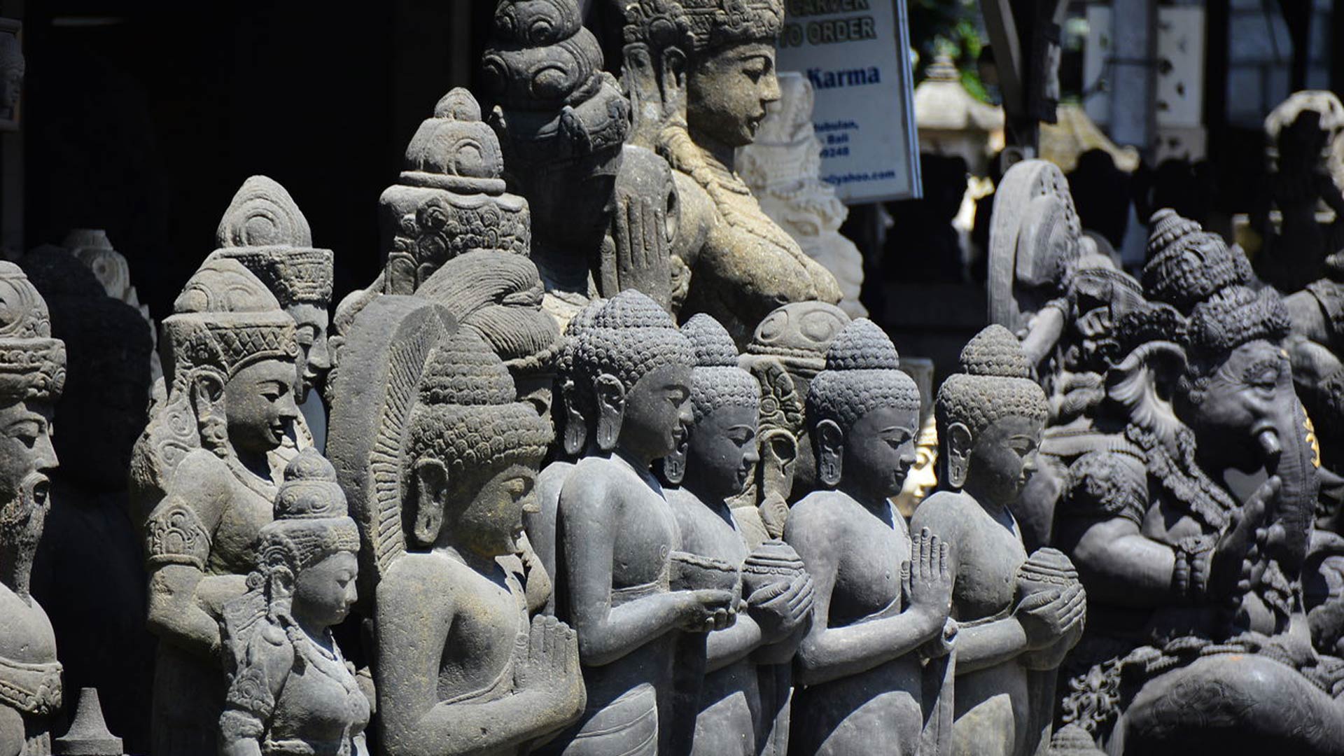 Budas, dioses hindúes, diosas y figuras ancestrales conforman un paisaje escultórico que ha dado reconocimiento internacional al pueblo.