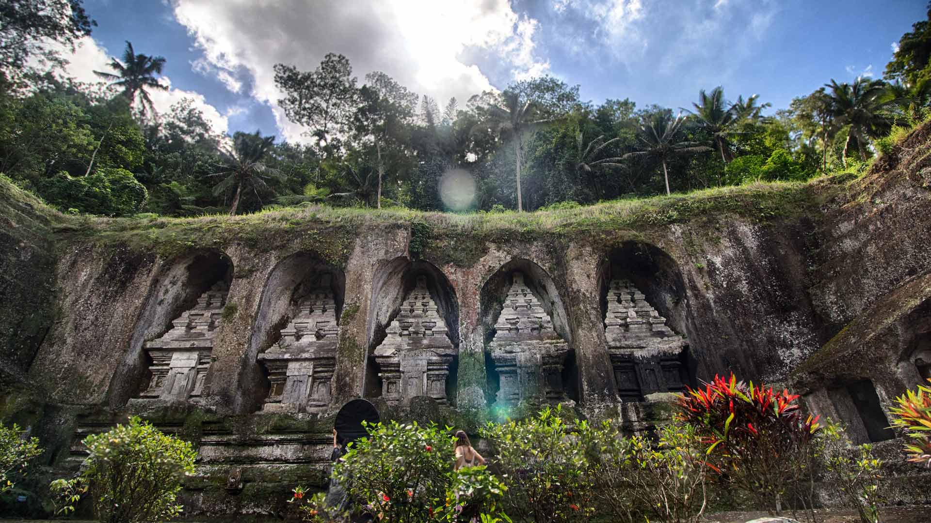 Gunung Kawi, a unos 30 minutos en coche, es el conjunto arqueológico más grande de Bali. Tallado en la roca en el siglo X, recuerda en estructura a Prambanan, aunque aquí se trata de un complejo de santuarios esculpidos directamente en la pared del valle.