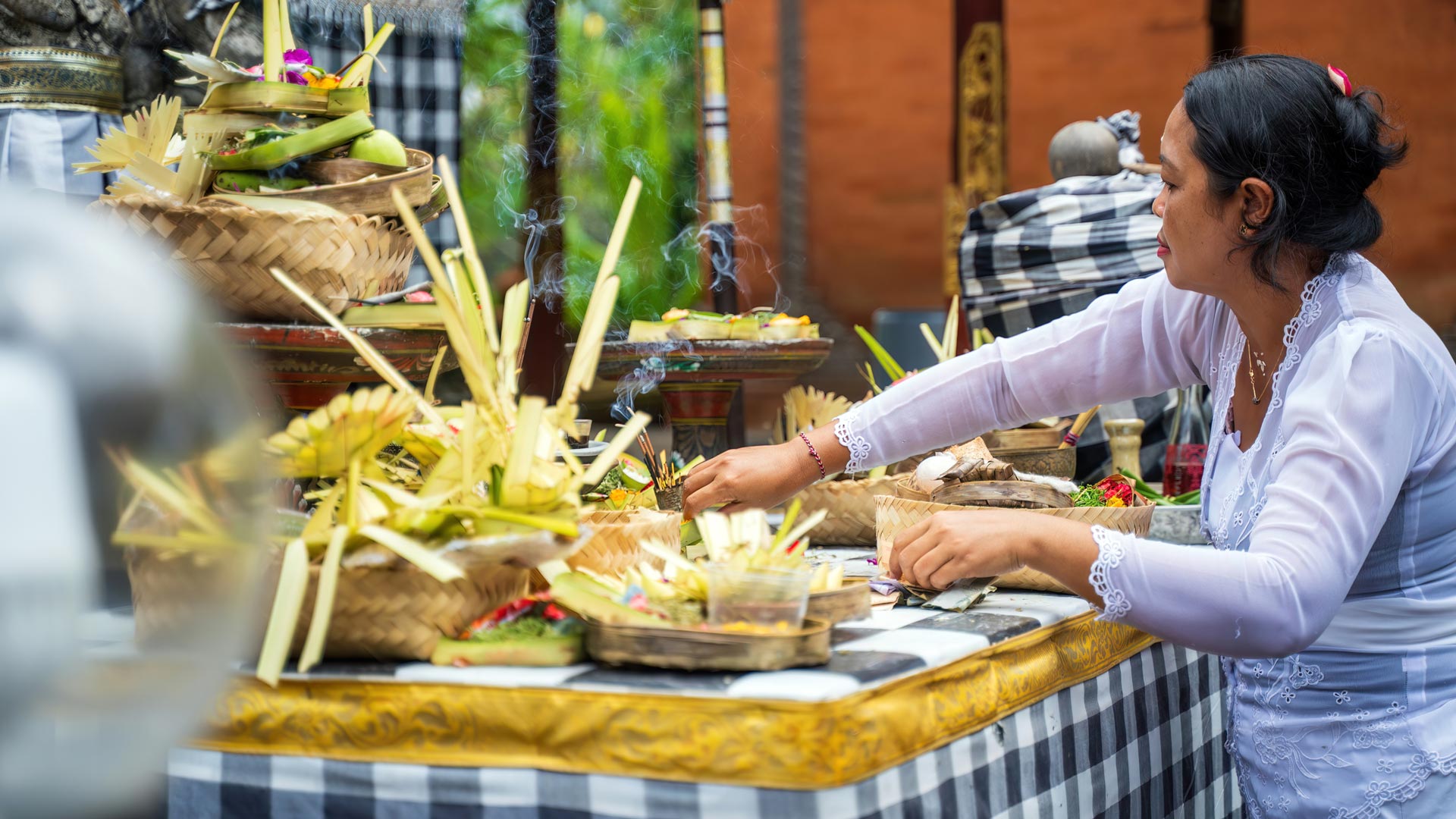 En Ubud, la cultura tradicional no se conserva como un vestigio del pasado, sino que forma parte activa del presente. Cada día comienza con pequeños rituales: ofrendas de flores, arroz y hojas de palma —los canang sari— colocadas cuidadosamente en puertas, aceras y templos como gesto de gratitud y equilibrio con lo sagrado.