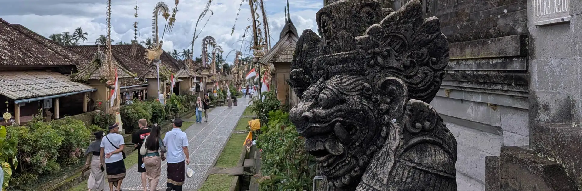 Desayuno. Salida hacia Candidasa. En ruta visitaremos el Templo de Beji, uno de los mรกs antiguos de la isla y dedicado a la diosa del arroz, muy ligado a la tradiciรณn agrรญcola balinesa. Continuaciรณn hacia Kintamani, desde donde disfrutaremos de impresionantes vistas sobre el lago Batur y el paisaje volcรกnico que lo rodea. Seguiremos hacia el Templo de Besakih, situado en las laderas del monte Agung, el volcรกn mรกs alto de Bali. Conocido como el Templo Madre, es el complejo religioso mรกs importante, grande y sagrado de la isla, formado por mรกs de veinte templos. Tras la visita, continuaciรณn a Candidasa y alojamiento.